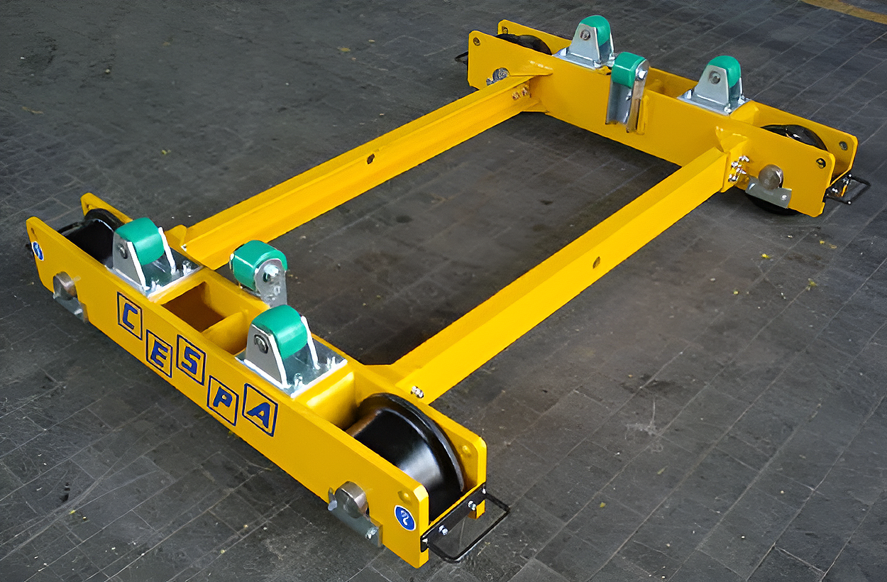 CESPA tillverkar ett brett sortiment av universella dummyboggier för stöd och hantering av vagnskorgar under tillverknings- och/eller översynsprocesser, med en lastkapacitet upp till 40 ton.